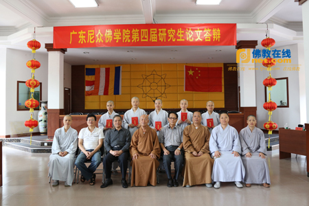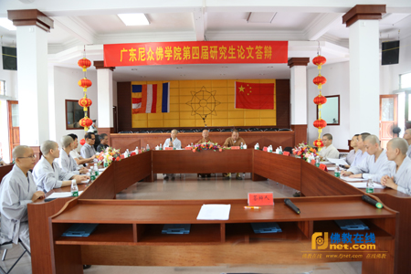 2013年10月4日上午九时,广东尼众佛学院第四届研究生论文答辩在定光寺法堂隆重举行。出席论文答辩会的有定光寺方丈达宜大和尚,广东尼众佛学院院长达理法师,广东尼众佛学院教务长振辉法师,广东尼众佛学院教务主任智如法师,南京大学中华文化研究院院长赖永海教授,厦门大学哲学系刘泽亮教授,厦门大学哲学系高令印教授,以及学院的其他法师等。