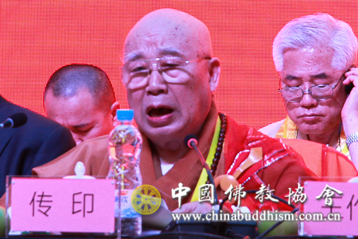 中国佛教代表团团长、中国佛教协会会长传印长老在开幕式上致辞
