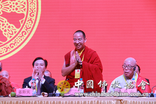 中国佛教协会副会长班禅额尔德尼·确吉杰布在开幕式上致辞