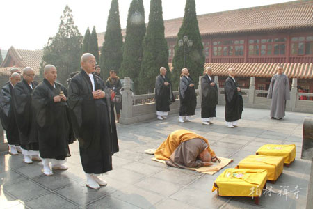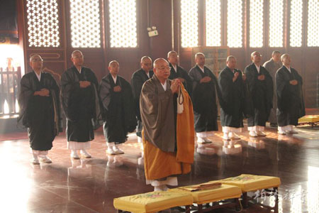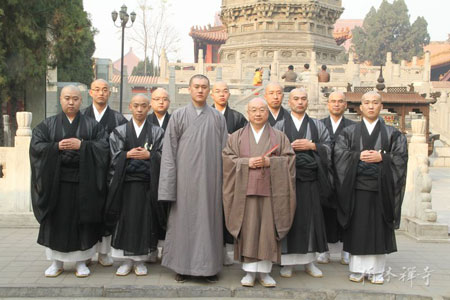 2013年11月22日下午,日本静冈市临济寺住持阿部浩三一行11人到河北赵县柏林禅寺参访,受到了柏林禅寺知客明玉法师的热情接待。