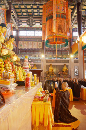 法会内容包括:当日拜《千佛宝忏》;24日至29日(农历廿二至廿七)拜《梁皇宝忏》;28日(廿六)晚17:30举行“大众焰口”;29日(廿七)晚19:30点万灯;30日(廿八日)为千佛塔奠基吉日,早殿将举行供天法会,并于上午8:00三步一拜礼塔,而后举行普贤传供上供。