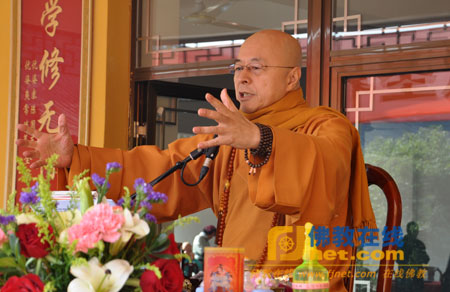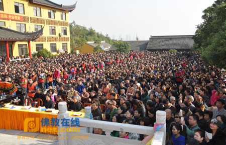 海涛法师在无锡横山寺念佛堂前广场为四众弟子作“幸福人生”佛学讲座