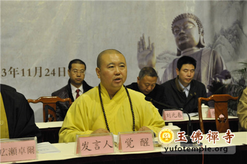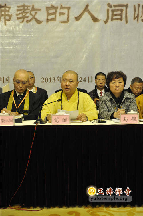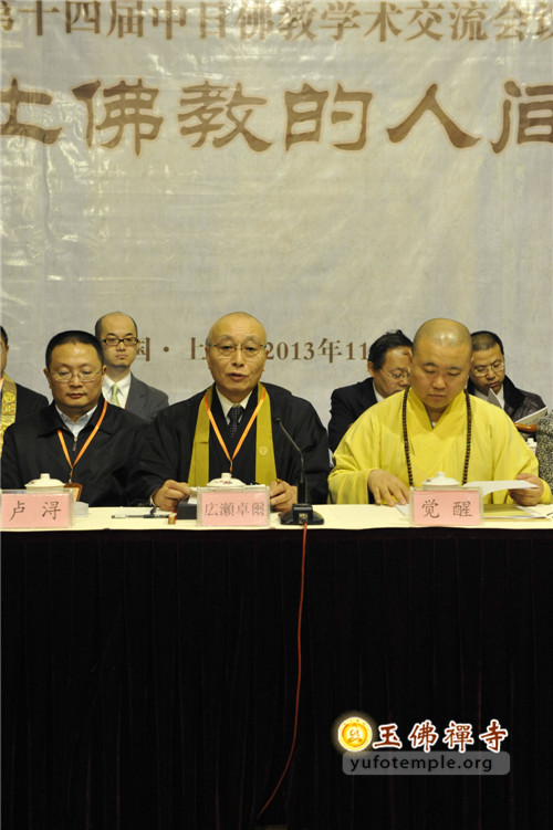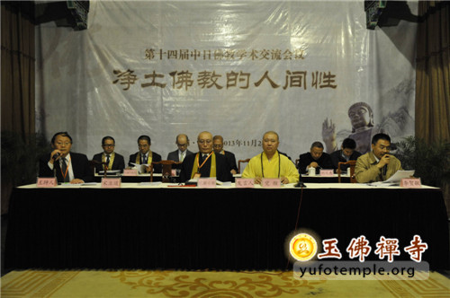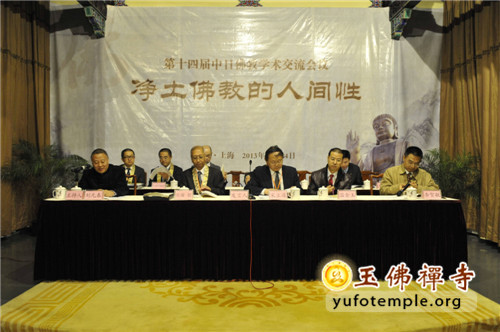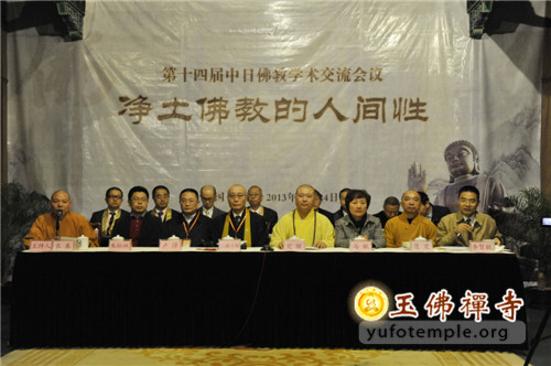 2013年11月24日,以“净土佛教的人间性”为主题的第14届中日佛教学术交流会议在沪上名刹玉佛禅寺隆重举行,以中国佛教协会副会长、上海市佛教协会会长、玉佛禅寺方丈觉醒大和尚为团长,中国佛教文化研究所所长宋立道教授为副团长的中国佛教代表团,以及由日本佛教大学社会学部教授广濑卓尔为团长、社会学部教授佐藤健为副团长的日本佛教代表团,出席了研讨交流活动。中国佛教协会副秘书长卢浔先生、普陀区委统战部副部长、民宗办主任马毓女士、上海市民族和宗教事务委员会副处长朱松林先生、上海市佛教协会副会长周富根居士等有关方面领导也应邀出席了开幕式,上海玉佛禅寺觉群学院的全体学员旁听了会议。