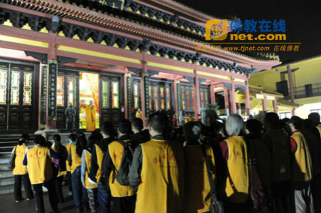 10月25日下午,报名参加行脚的信众陆续抵达寺院。晚上7点半,海德法师在大雄宝殿为全体行脚人员开示了行脚的功德、意义,勉励大家珍惜这次殊胜的机缘,并强调了行脚的仪轨及途中的注意事项。