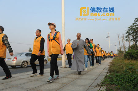 佛教重视行脚参学犹如重视参禅念佛,虔诚行脚参方的收获除了增广见识,强化意志、体魄,培养吃苦忍耐的精神,还是证悟佛法的有效途径之一。根据年度学佛修习安排,湖南省长沙市洗心禅寺于2013年10月26日举行第四期行脚活动。