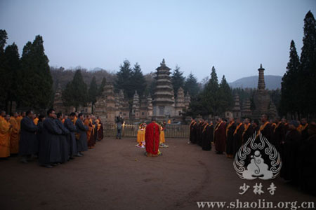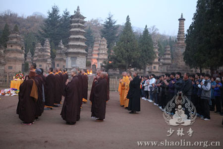 2013年11月3日(农历十月初一),为中国传统的节日“寒衣节”(又称“祭祖节”)。按照中华民族的传统和佛教仪轨,河南嵩山少林寺僧众到塔林祭奠历代祖师。参加仪式的,还有少林慈幼院的孩子及诸位善信。
