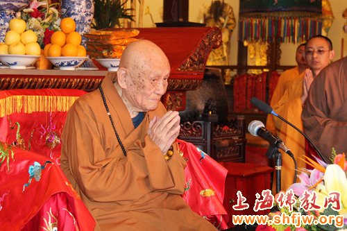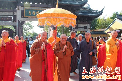梦参长老莅临上海龙华古寺 照诚大和尚虔诚恭迎