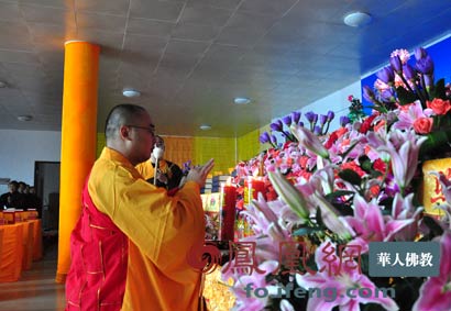 华严法会主法师仁果法师拈香(图片来源:凤凰网华人佛教 摄影:水菊)