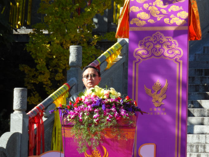 中国佛教协会常务理事、云南省佛教协会副会长、崇圣寺方丈崇化大和尚介绍与会嘉宾
