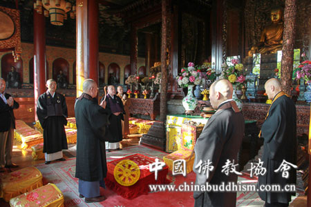 大谷哲夫会长一行在广济寺大雄宝殿内诵经礼佛