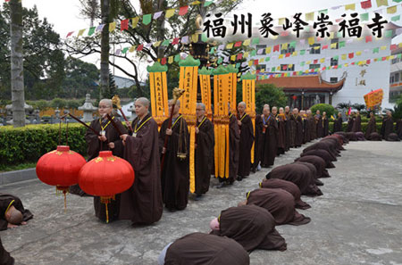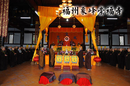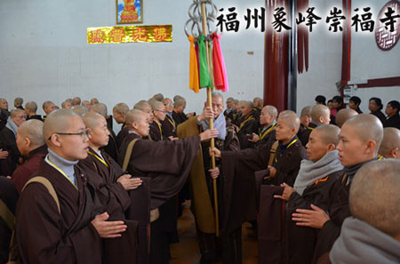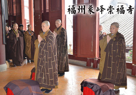 2013年12月12日,福州象峰崇福堂内,喜气悦人,众人心喜万分。福建省佛教协会传授第二十三次二部僧戒法会之三坛正授菩萨戒仪式举行。