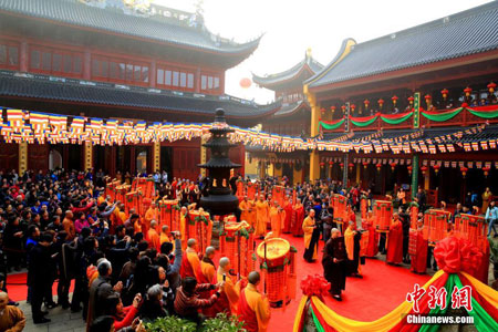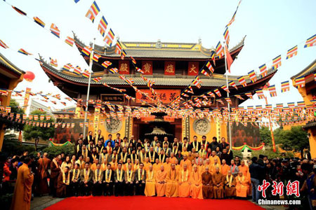2013年12月8日上午8时,上海“下海庙”隆重举行圣缘法师晋院升座仪式。海内外诸山长老、护法居士和各界嘉宾千余人,见证了该神圣而庄严的佛门盛事。仪式中,中国佛教协会副会长、上海市佛教协会会长、玉佛寺方丈觉醒法师将圣缘法师送上法座。