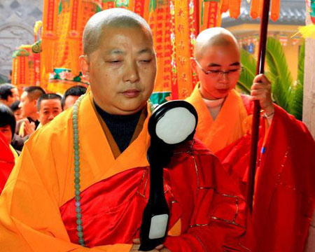 中佛协副会长、上海市佛协会长、玉佛禅寺方丈觉醒法师为圣缘法师送座