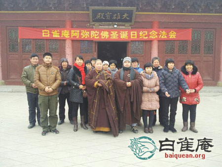 2013年12月19日,河北省邢台市南和县白雀庵圆满举行阿弥陀佛圣诞拜忏法会,法会于12月13日(农历十一月十一日)开始,至19日(农历十一月十七)结束。法会由悟贵法师主法7天佛七,拜忏法会,并与阿弥陀佛圣诞日当天主法带领信众诵大乘经典祈福消灾法会,功德回向佛法昌隆、正法久住、世界和平、灾难消除、风调雨顺、国泰民安。