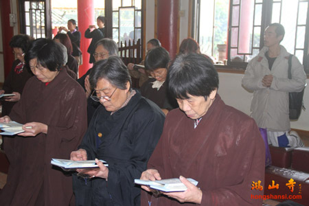 2013年12月22日为冬至,是大众纪念祖先的日子,当日上午8时,福建厦门鸿山寺两序大众于大雄宝殿虔诚顶礼“慈悲三昧水忏”,感恩报德,纪念祖师大德和诸位先贤,并回向该寺功德楼内各姓门中历代宗亲。