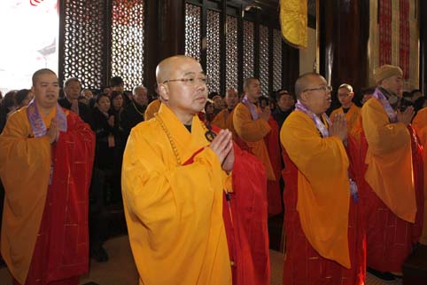 中国佛教协会常务理事、浙江省佛教协会会长、宁波奉化雪窦寺方丈怡藏法师,中国佛教协会常务理事、兰州报恩寺方丈普正法师,浙江省佛教协会副秘书长、绍兴市佛教协会会长、炉峰禅寺方丈净芳法师分别致词祝贺,随后并与中国佛教协会常务理事、中国佛学院研究部主任、广西柳州开元寺方丈圆慈法师,浙江省佛教协会副会长、宁波天童禅寺方丈诚信法师,天童禅寺首座修祥长老,嘉兴市佛教协会会长、桐乡香海禅寺住持贤崇法师等诸山长老拈香礼佛,共同主法。般若寺主持戒情法师在庆典上致欢迎辞。