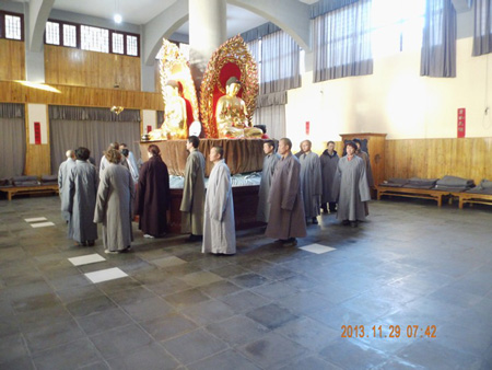江西省宜春市仰山寺2013癸巳年禅七第四届禅七圆满结束,于2013年12月8日早板香解七。中午于大雄宝殿以及禅堂护法韦陀前上供。调整数日后,仰山寺即将开始仰山寺的首届佛七法会。佛七法会将于农历十一月十七阿弥陀佛圣诞日结束。