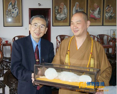 2013年12月28日上午,台湾阳明山光泉寺董事局主席曾奉献先生一行4人到江苏常州武进区三圣寺参访。武进区佛教协会副会长、三圣寺住持宗才法师热情接待了曾奉献一行,并带领来宾参观了三圣寺的建筑群和寺院设施,介绍了三圣寺的发展情况。