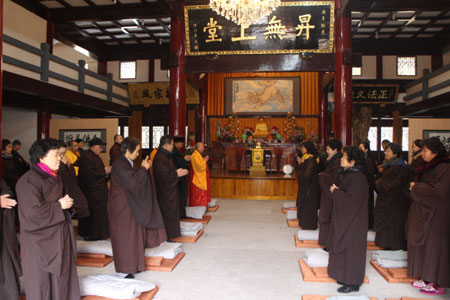 2013年12月12日,浙江省温州市雁荡山能仁寺一年一度的冬季佛七共修法会如期进行,傍晚6点,佛七法会的熏坛仪式在大雄宝殿隆重举行。来自乐清、温州、温岭、厦门、上海等地的护法善信随喜参加佛七法会。