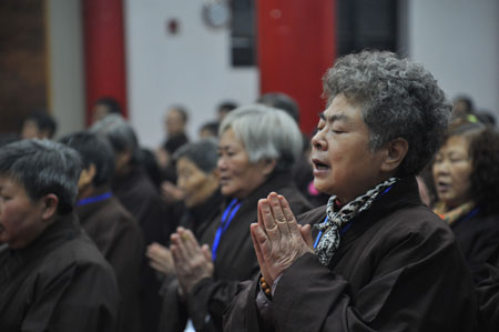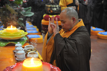 2013年12月13日,四川成都文殊院举办“2013年精进佛七共修法会”,由念佛会负责人广悟法师主七。本次法会秉承寺院冬季“佛七”的传统,举行为期七天的念佛共修,于阿弥陀佛圣诞之日圆满,又正值成都文殊院香光念佛会成立十周年,在此因缘殊胜之时,五百多居士信众踊跃报名参加法会。