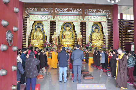 最后,忠明法师领众在大雄宝殿举行上供法会,以祈愿诸佛菩萨、护法龙天加持道场兴隆。
