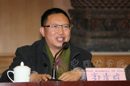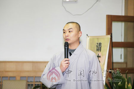 颁奖仪式首先由杭州市民族宗教事务局局长郭清晔讲话,他在讲话中提到,杭州号称“东南佛国”,在党和政府的关心支持下,杭州佛教发展非常好,中国佛学院的毕业生在杭州很多寺院是骨干力量,起到了引导和示范作用。并欢迎中国佛学院的学生毕业后去杭州,为杭州佛教的发展作贡献。
