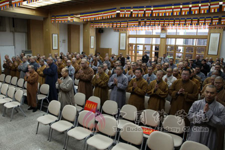 随后,湛如法师在讲话中就杭州灵隐寺对中国佛学院的大力资助表示衷心的感谢。他指出,杭州灵隐寺对中国佛学院的资助,不仅是对中国佛学院教学工作的肯定与认同,更体现了对中国佛学院教学工作者、默默耕耘者、安心修学者的肯定与认同,同时也是一种有效的鼓励与鞭策。他希望大家以此为契机,更加努力工作,继续加强自身建设,努力提高教学质量,同心协办,团结一致,再接再厉,全心全意,为中国佛教教育事业进一步发展而勇猛精进。