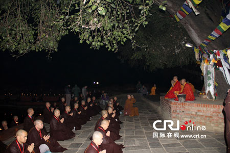 学诚法师21日晚在佛祖故乡菩提树下给戒子和信众开示