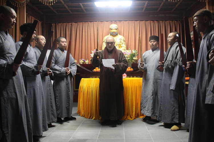 起七仪式圆满后,大众云集大雄宝殿,在清净的108声钟声中忏悔身心,洗涤心灵。以期自己能够身心清净,精进用功。