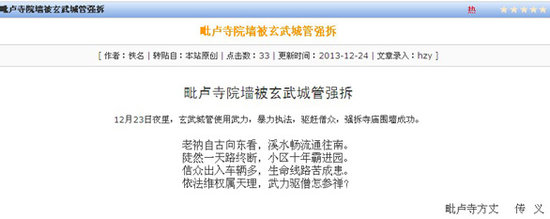 给弱者公平 还社会公道 南京毗卢寺院墙遭城管强拆