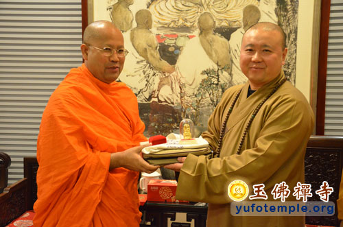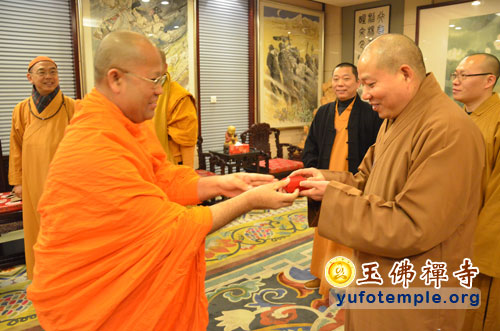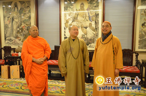2013年12月19日下午4时许,泰国摩诃朱拉隆功大学沙威·乔迪克副校长在世界佛教僧伽会秘书长、新加坡毗卢寺方丈慧雄法师等的陪同下来到上海玉佛禅寺,拜见了上海市佛教协会会长、玉佛禅寺方丈觉醒大和尚,并就双方今后继续保持沟通和交流进行了座谈,座谈结束后双方还互赠礼品留作纪念。陪同接待的还有玉佛禅寺寺务处主任长春法师、副主任慧禅法师等寺院领导。