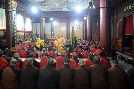 冬至是中国农历中一个非常重要的节气,也是中华民族的一个传统节日,冬至俗称“冬节”、“长至节”、“亚岁”等。我国很多地区在冬至这天有祭祖的习惯,也有地方在这天过节庆贺。多年来,普济禅寺常住每逢冬至节气,都会施放大焰口,普利十方,回向一切众生。(文:定光 图:昌其)