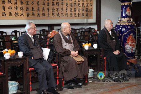 诚信法师介绍了天童禅寺拟创办中国禅宗文化研究交流基地和国际(中日)禅文化交流中心的初步构想情况等,并说明了创办中国禅宗文化研究交流基地和国际(中日)禅文化交流中心,在当代社会中的价值意义和发挥宗教的积极作用,推进世界和平,稳定社会人心的慈悲理念。日本永平寺监院佐藤好春感谢诚信法师的热情接待。