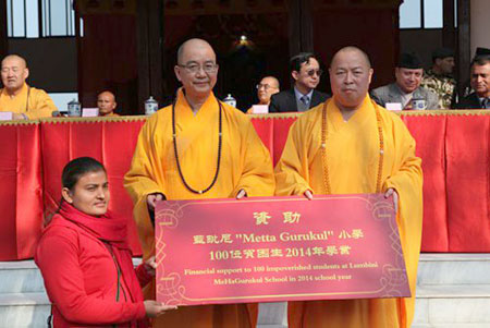 2013年12月23日上午11点,位于尼泊尔“佛祖故乡”蓝毗尼的中华寺隆重举行“尼泊尔中华寺三期工程落成典礼暨本焕长老舍利塔奠基仪式”。