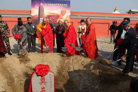 学诚法师、妙江法师、印顺法师等领导嘉宾为本焕长老舍利塔奠基