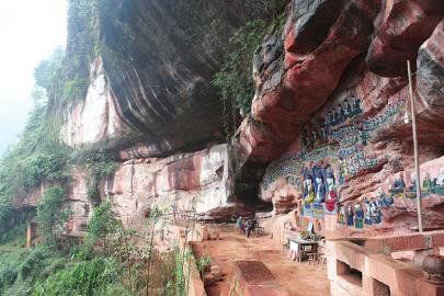泸州市叙永县马岭乡有一座鹤盘山,在鹤盘山上,有一天然半环形洞窟,名为清凉洞,传说,明朝万历年间,曾有一位青衣淡眉的法师,带着自己的三位徒弟来到这里,常年来,他们日夜兼工,在山间的峭壁上,凿出了两百多尊大小不一的佛像。从东向西共42龛,均为拱形龛,横向排列。佛像最大高1.3米,最小高0.1米,均为深浮雕。