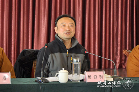 杨伯明副局长讲话,他要求省佛协明年要将《2014工作要点》中的活动有声有色地开展起来,重点有两个,一是在藏传佛教领域开展“以戒为师,守法持戒”的主题教育活动,这对藏传佛教的发展具有非常重大的意义,藏传佛教是维护藏区稳定的重要力量,要发挥优势,为藏区经济文化发展作贡献;二是组织好系列佛教文化活动,以此为载体,搞好文化建设,特别是僧人的学习更要加强,要为信教群众提供更好的宗教服务,提供正信的佛教教育。