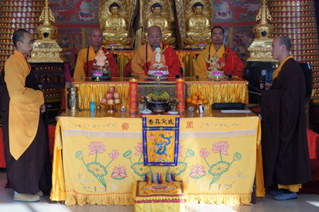 2013年11月28日上午,河北省保定市观音寺举行了十戒法会,古莲台万佛寺住持道泓法师、观音寺方丈寂禅法师、住持真广法师主持此次法会。