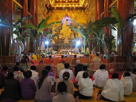 11时,都比罕听长老带领信众到曼听公园放生,增长慈悲心,减少罪障与疾病,增福增寿。13时,来自西双版纳州各地区的僧人开始念”维仙达腊本生经”全集,景洪、勐海、勐腊、勐龙、勐罕等地的经书念诵各有意趣,信众听得如痴如醉,沉浸在优美的语言和生动的故事中。晚上19时30分,在都比罕听长老、都比玛哈香带领下,举行供千盏灯法会。僧人带着居士、信众绕殿三周,千朵酥油灯照亮大殿的每一个角落,传递着爱与祝福。
