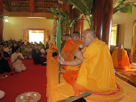 中国佛教协会副会长、西双版纳州佛教协会会长、西双版纳总佛寺住持祜巴龙庄勐大长老主持法会领众诵经