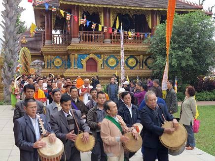 11日凌晨至7时,僧众诵经祈福,祈愿国泰民安。上午10时,祜巴龙庄勐大长老带领全体信众恭迎供养物品,绕殿三周再进入大殿。祜巴龙庄勐大长老主持法会,中国佛教协会副会长、云南佛教协会会长刀述仁居士及众居士、信众参与了法会。