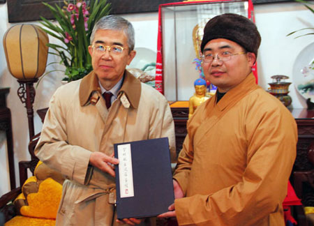开福禅寺向日本青年友好交流代表团赠送弘一大师手书的《金刚经》