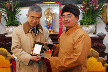 2013年12月18日,由日本各界青年组成的日本青年友好交流代表团一行20人到安徽省合肥市开福禅寺参观访问。开福禅寺监院智雨法师陪同代表团一行参观了寺院,并进行了友好交流。