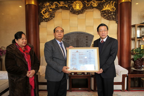 缅甸驻华大使吴丁乌先生夫妇到北京灵光寺参拜