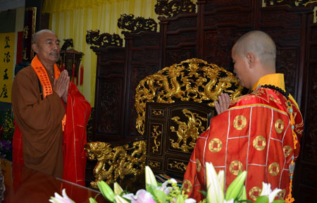辽宁省佛教协会会长、沈阳慈恩寺方丈照元法师为隆道法师送座