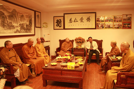 2013年12月6日,广东省佛教协会会长明生法师一行在梅州市佛教协会会长、千佛塔寺住持明慧法师和梅州市宗教局副局长温燕玲等领导的陪同下,到梅州慈光安养院进行考察。梅州慈光安养院院长曾映标热情接待并带领明生法师一行进行了参观。