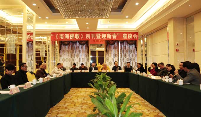 2014年元月24日,海南海口天高云淡,阳光艳丽,由海南省佛教协会筹备的“《南海佛教》创刊暨迎新春”座谈会在海口举行,来自海南省文化界、学术界人士近40人出席了会议。中国佛教协会副会长、海南省佛教协会会长、三亚南山寺方丈印顺大和尚出席了会议。海南省委统战部王益富副处长、海南省民族宗教事务委员会王曲辰副处长、海口市委统战部吴天顺处长、海口市宗教局杜欣能局长等领导也参加了会议。