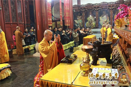 “闻钟声、烦恼清、智慧长、菩提生”,2013年12月31日,浙江省绍兴安康寺在大雄宝殿隆重举行第二届新春撞钟祈福法会。
