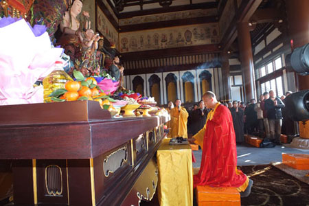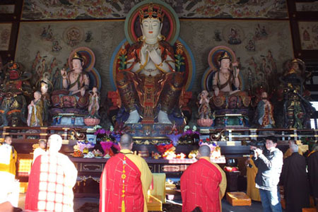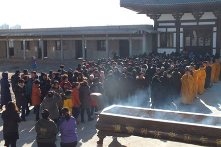 2014年1月12日,佛光普照,龙天欢喜。河北省廊坊市隆福寺山门、天王殿佛像安座暨祈福法会圆满举行。隆福寺住持慧广法师、崇福寺住持宏一法师、隆福寺监院悲贵法师共同为法会主法,来自京津冀四众弟子三百多人参加了法会。