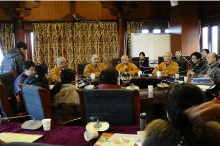 2014年1月18日下午,“三岁菩提路,共话师长恩”北京龙泉寺翻译中心2013年总结交流会在见行堂举行。